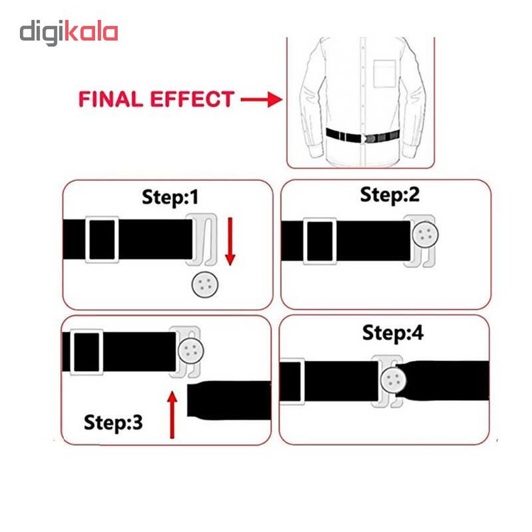 طول کش در بلند ترین حالت 82 سانتی متر طول کش در کوتاه ترین حالت 43 سانتی متر پهنای کش 2 سانتی متر با قابلیت تنظیم طول کش متناسب با دور کمر مناسب برای پیراهن های دکمه دار زنانه و مردانه