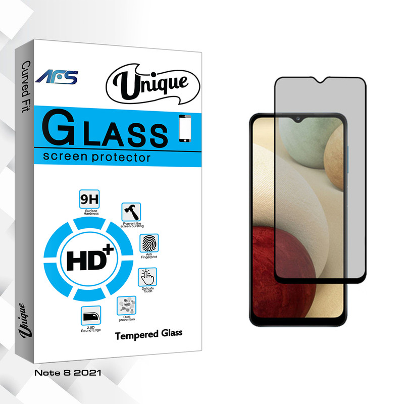محافظ صفحه نمایش سرامیکی حریم شخصی ای اف اس مدل Unique Glass NEW مناسب برای گوشی موبایل شیائومی Note 8 2021