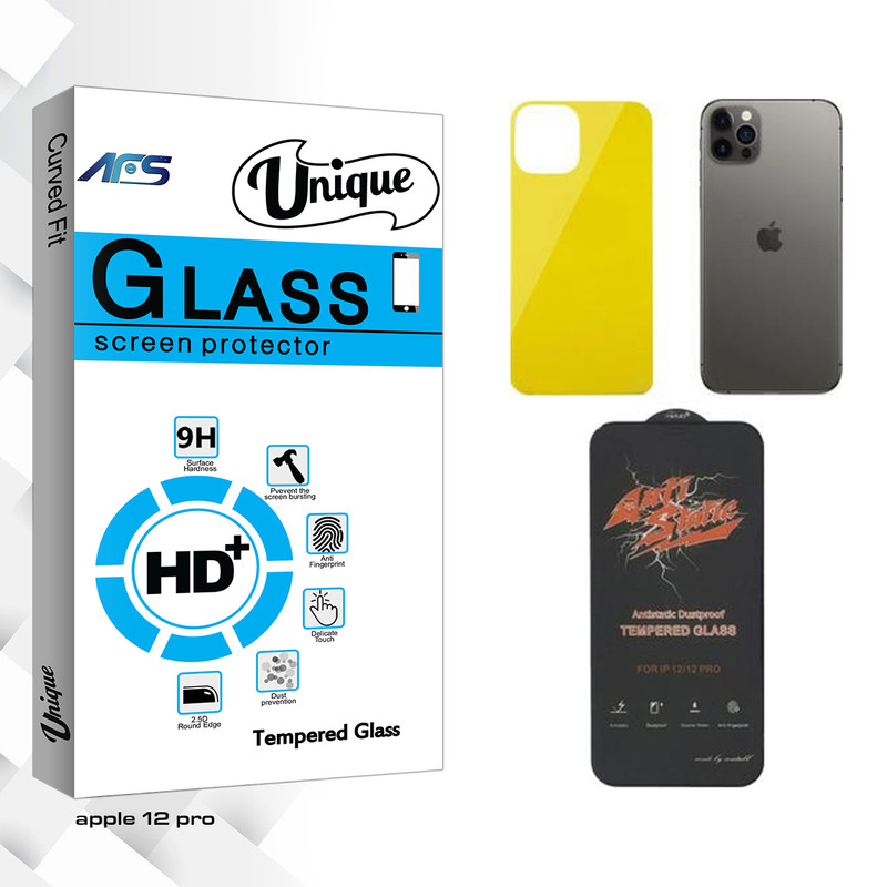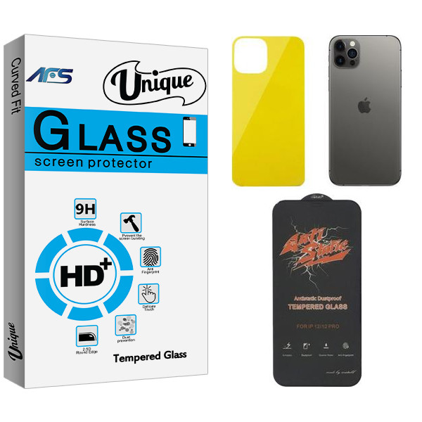 محافظ صفحه نمایش ای اف اس مدل Unique ANTI-STATIC مناسب برای گوشی موبایل اپل iPhone 12 pro به همراه محافظ پشت گوشی