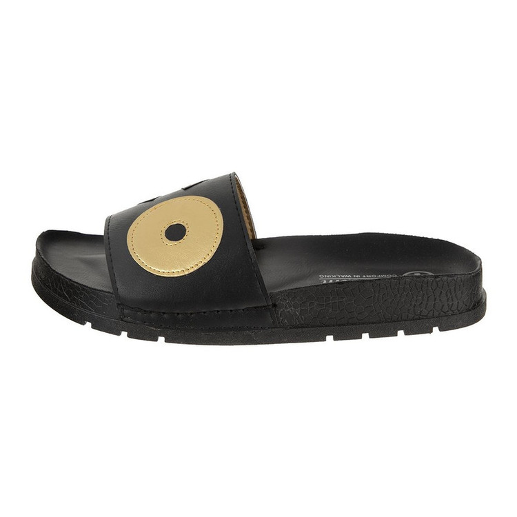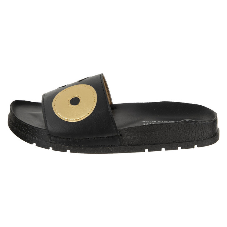 - صندل زنانه - دارای کفی طبی - رویه دارای حروف تکه دوزی شده - مدل زیره تخت - مناسب برای استفاده روزمره