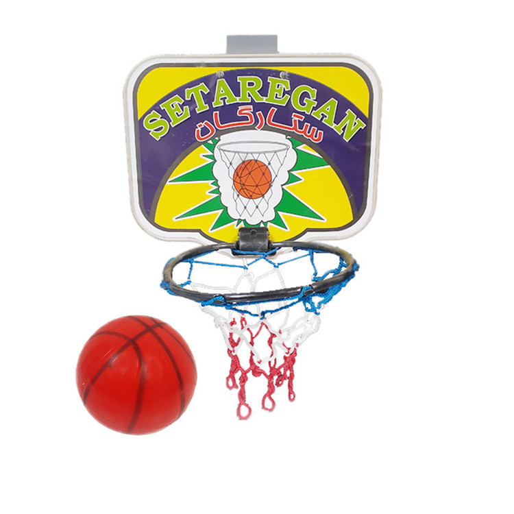 تور و توپ بسکتبال با طرح ستارگان - ابعاد توپ : 11 × 11 سانتیمتر - مناسب برای سنین بالای 3 سال - قابل نصب روی در