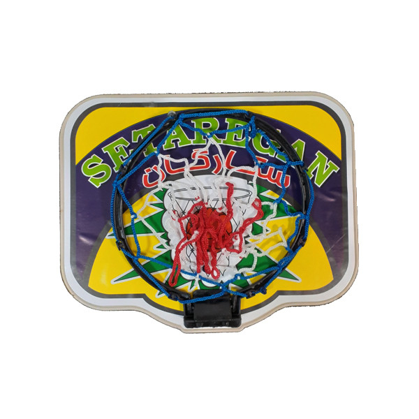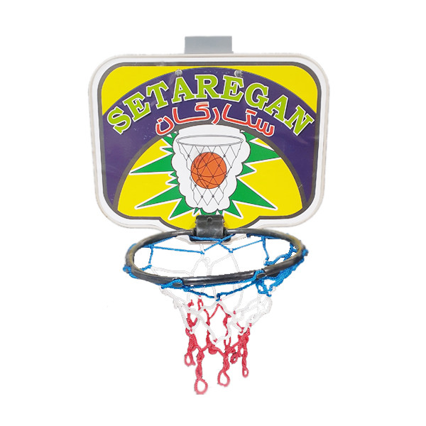 تور و توپ بسکتبال با طرح ستارگان - ابعاد توپ : 11 × 11 سانتیمتر - مناسب برای سنین بالای 3 سال - قابل نصب روی در