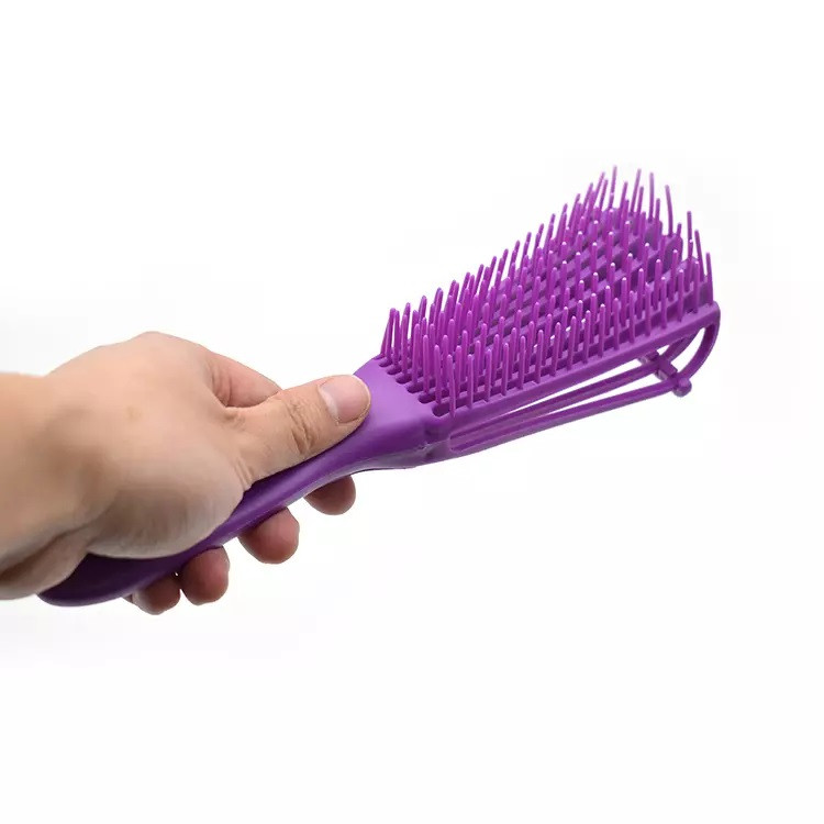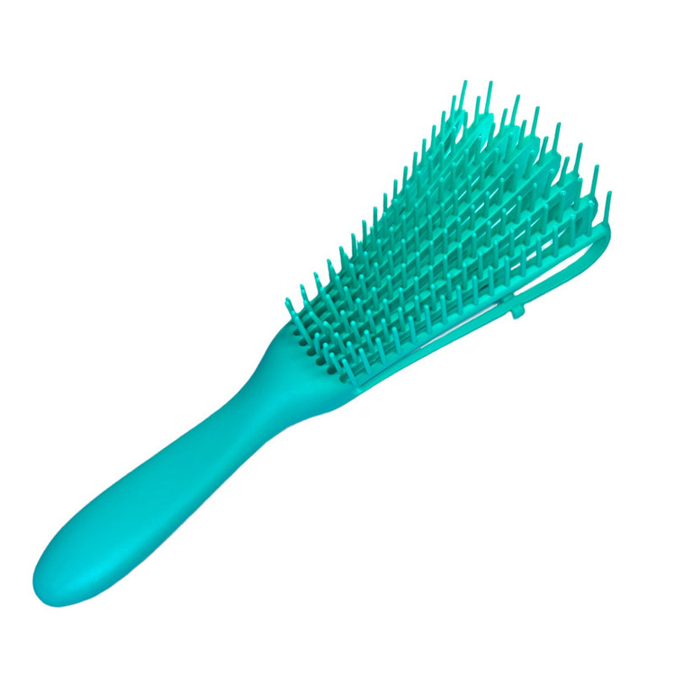 این برس معروف به برس فلکسی اختاپوسی و مناسب باز کردن گره ی موهای فر ریز فردرشت موج دار و انواع مو فر است جنس پلاستیک منعطف دارد خیلی محکم وخوش دست است هشت ردیف باریک دارد که با یک نوار به هم متصل میشوند و میتوانید از این نوار استفاده کنید یا میتونید نوار رو بردارید این برس یکی از محبوب ترین برس ها بین موفرفری هاست چون مو ها را نمیکشد و خیلی راحت ونوازشی گره های سخت مو ها را باز میکند این برس را میتوانید تنظیم کنید اگر موهای پر و کوتاهی دارید نوار پشتی برس را بالا تنظیم کنید و اگر موهای بلند و ضخیمی دارید نوار را پایین تنظیم کنید نواری که روی شانه قفل شده از قسمت پشت شانه دو محل دارد که برای تنظیم است