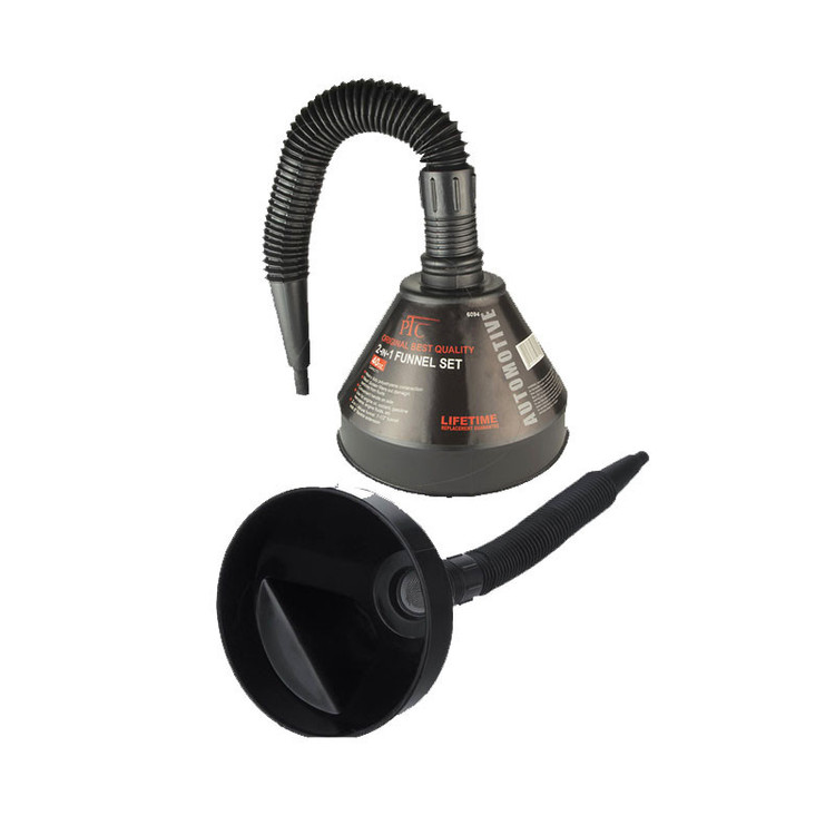 دو عدد قیف به همراه لوله خرطومی و توری داخل قیف