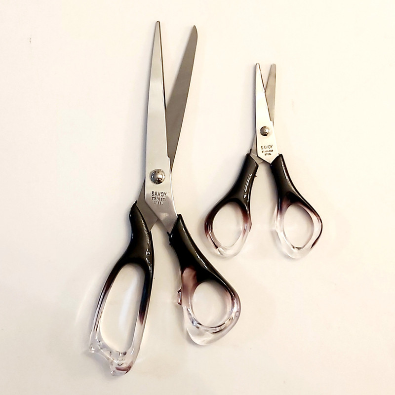 مجموعه دو عددی قیچی دسته عسلی محصول کمپانی SAVOY کشور چین می باشد. این قیچی ها با تیغه های تیز از جنس استیل ضدزنگ تولید شده اند. این مجموعه بزرگ و کوچک قیچی بیشتر نیاز های مختلف شما در خانه را برطرف می نماید.
