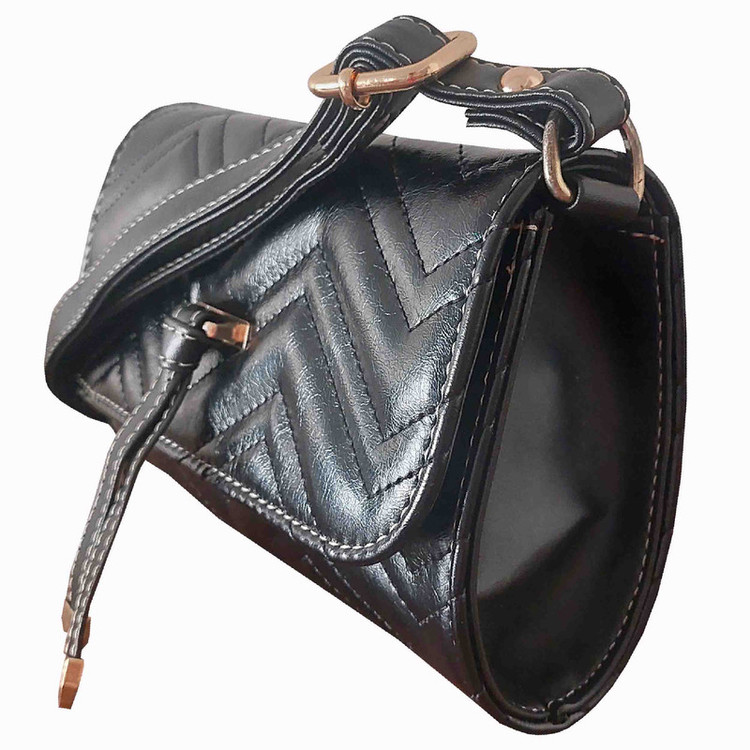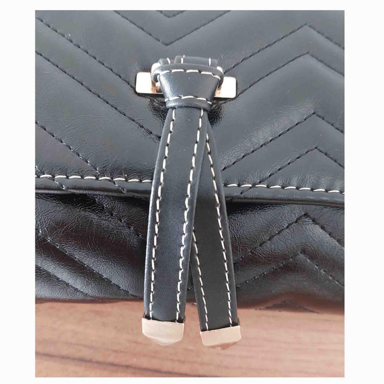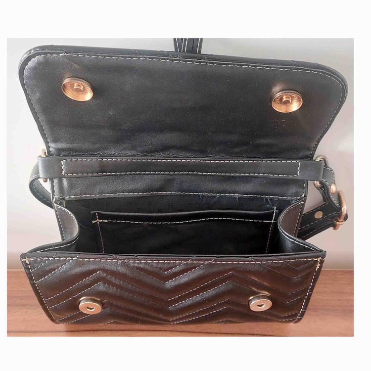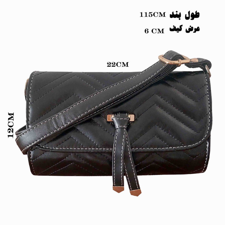 بسیار خوشدوخت و زیبا براق و دارای دوخت زیگزاگی در روی بدنه محصول دارای یراق الات با کیفیت درب مگنتی پنهان دارای بند بلند قابل تنظیم دوخت داخلی بسیار تمیز