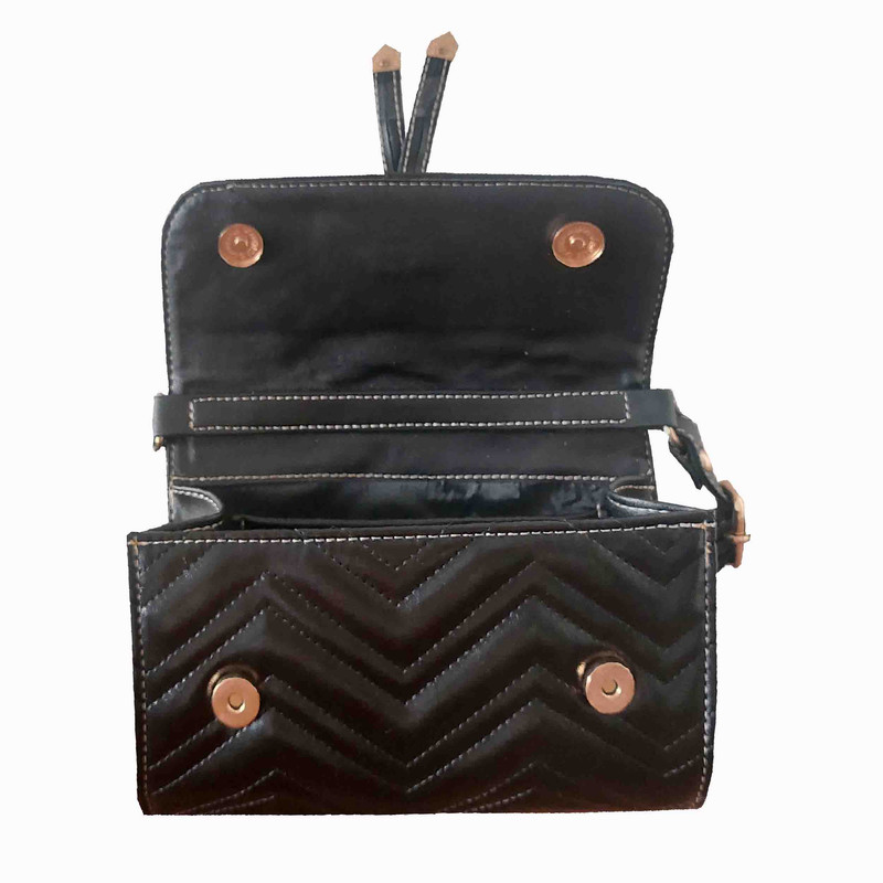 بسیار خوشدوخت و زیبا براق و دارای دوخت زیگزاگی در روی بدنه محصول دارای یراق الات با کیفیت درب مگنتی پنهان دارای بند بلند قابل تنظیم دوخت داخلی بسیار تمیز